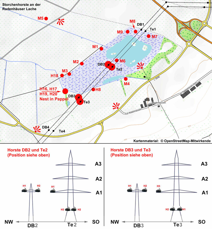 Mast 2, 3, 4, 5, 6, 7, Horst 8 Baumstumpf 1, Te2-20-H2 und Te3-20-H1